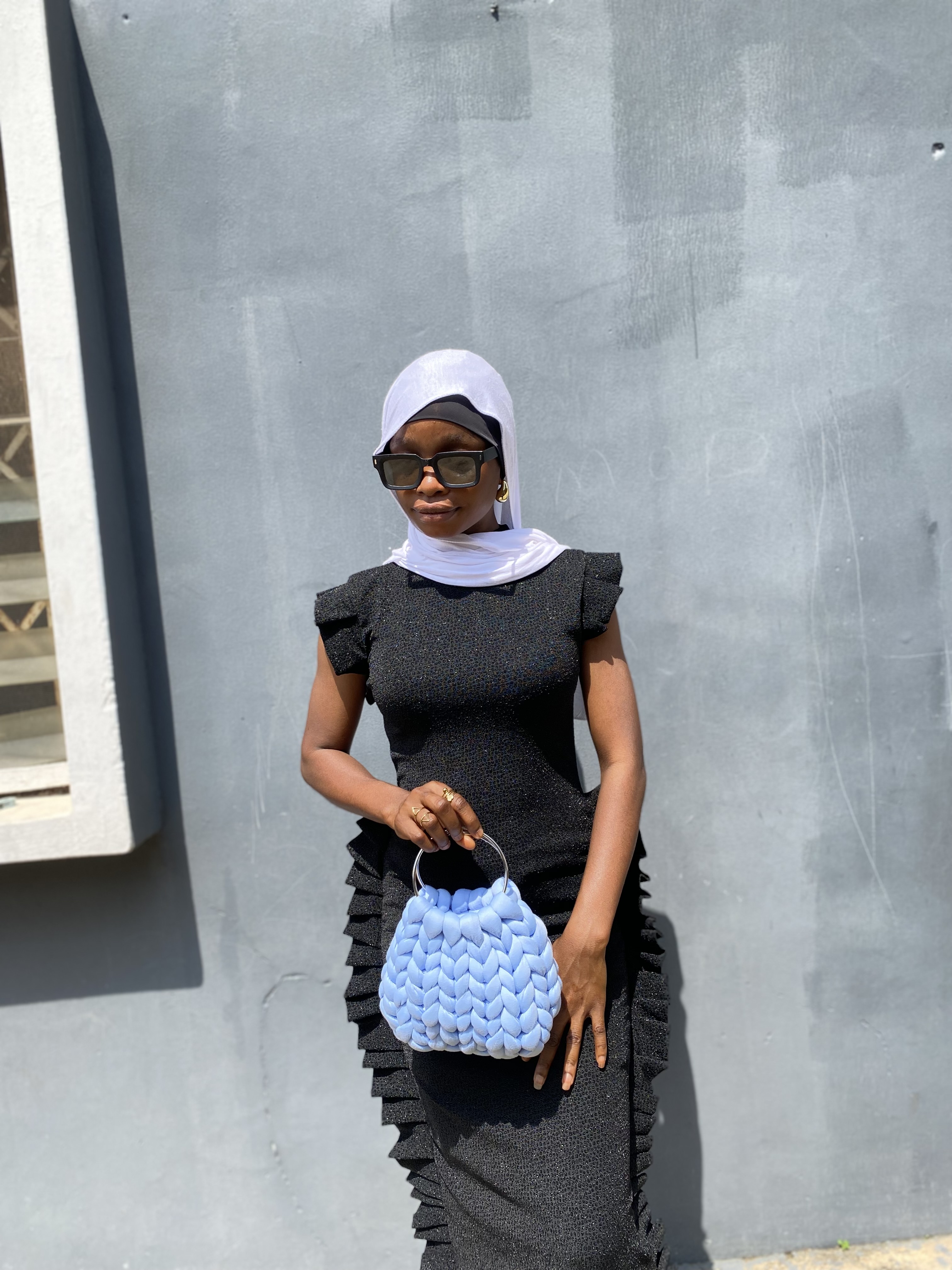 Buy Snugg Mist Bag: Chic Chunky Knit Tote in Serene Light Blue on Snugg Studio