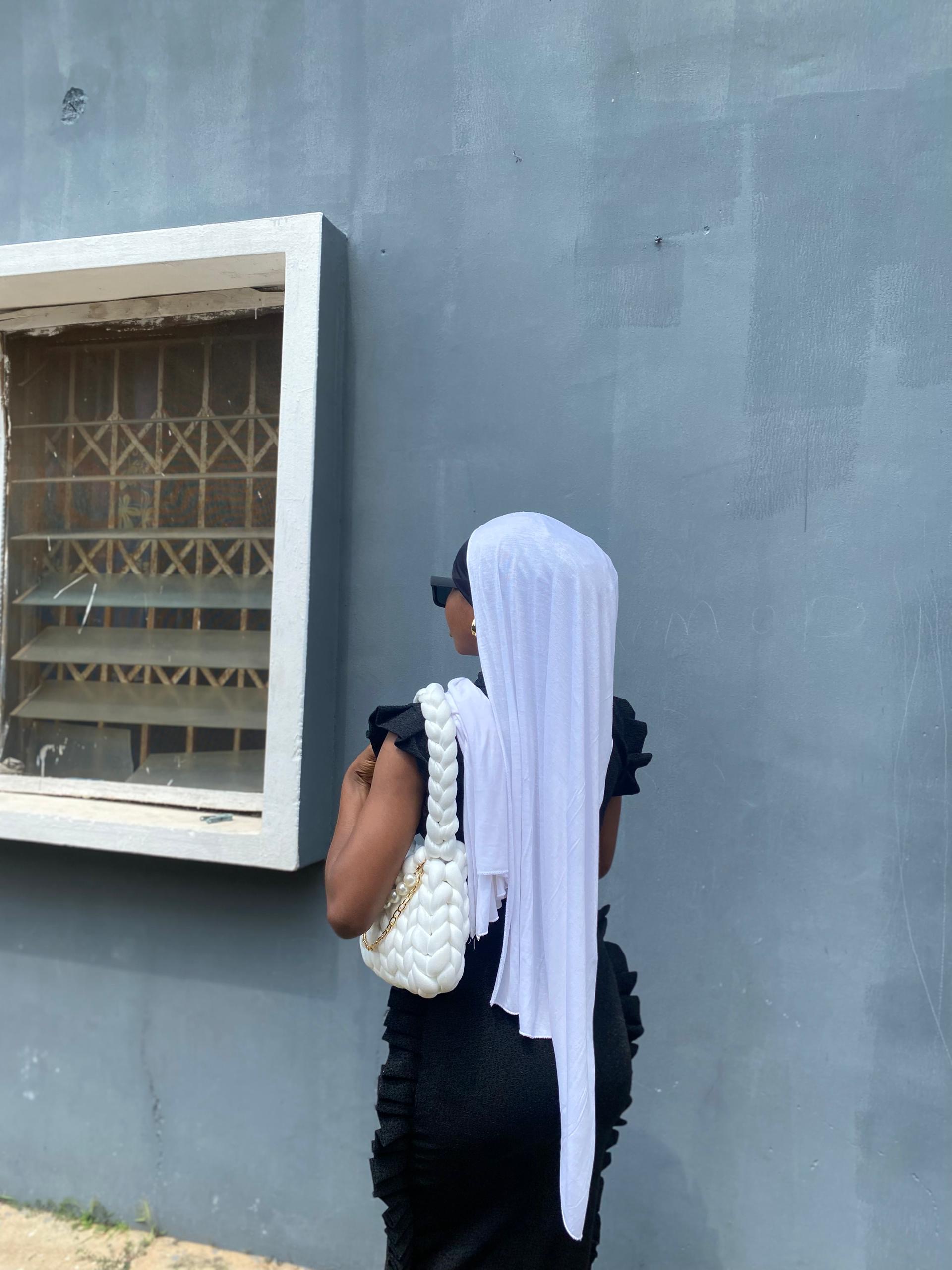 Buy Snugg Frost Bag: Chic White Pearl Chain Knit Shoulder Bag on Snugg Studio